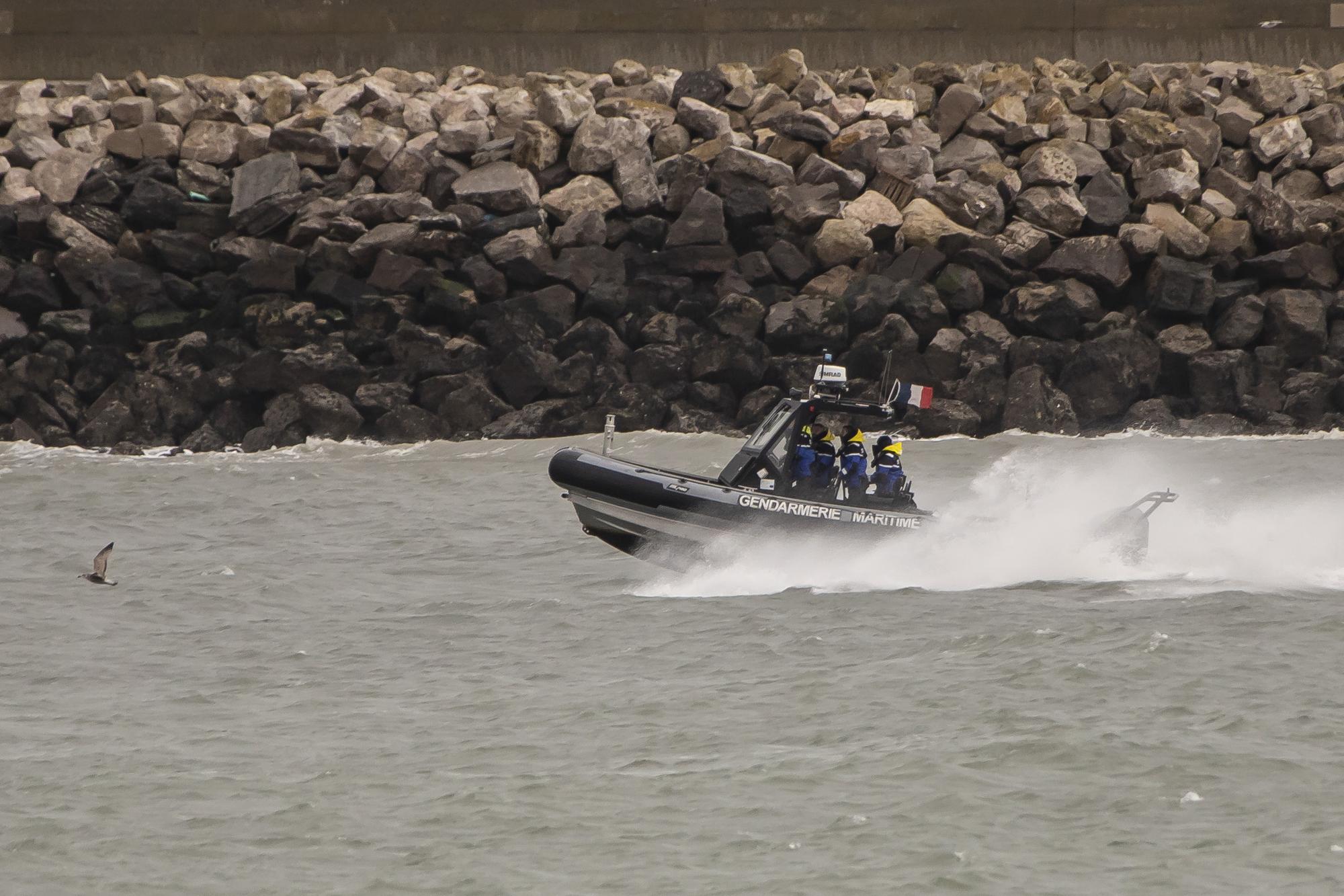 2021年11月26日,法国海岸巡逻队在法国北部加来港附近值勤。新华社发